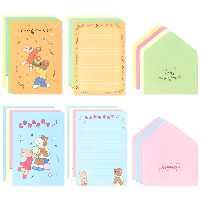 Monolike Happy and Lucky Birthday Letter Paper and Envelopes Set - 8Type, 32 Letter Paper + 16 Envelopes