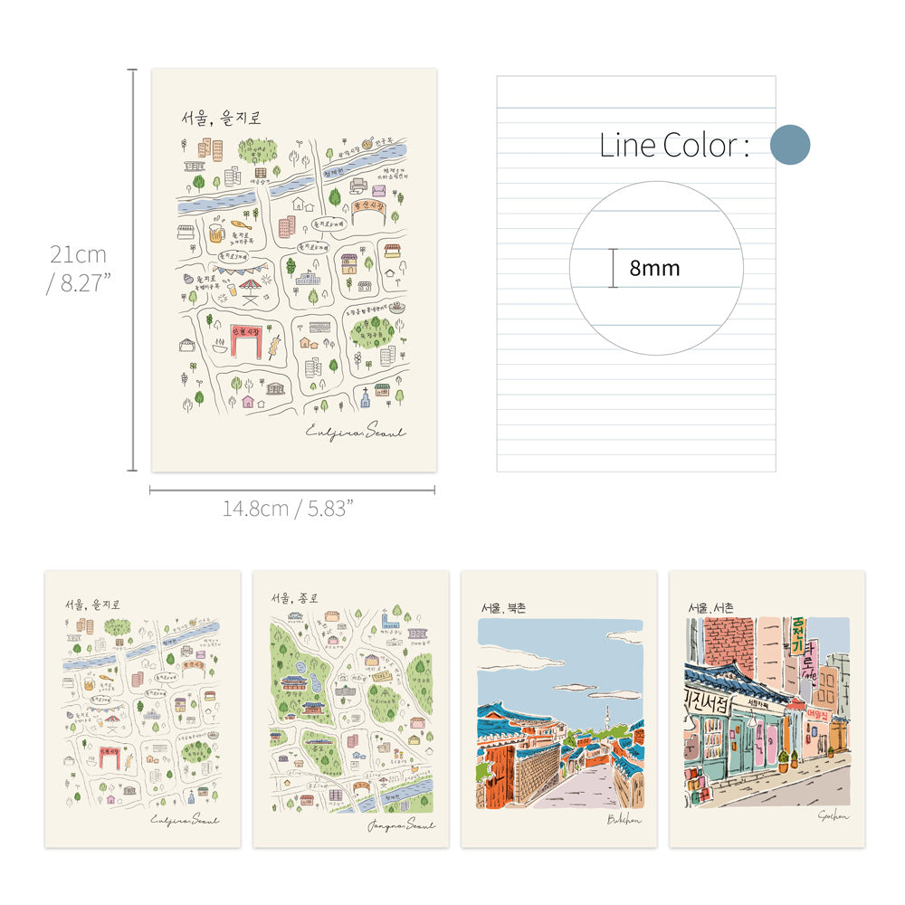 Monolike A5 Stitch Line Note Seoul 4P A SET - Academic Notebook, Line Notebook, 48page