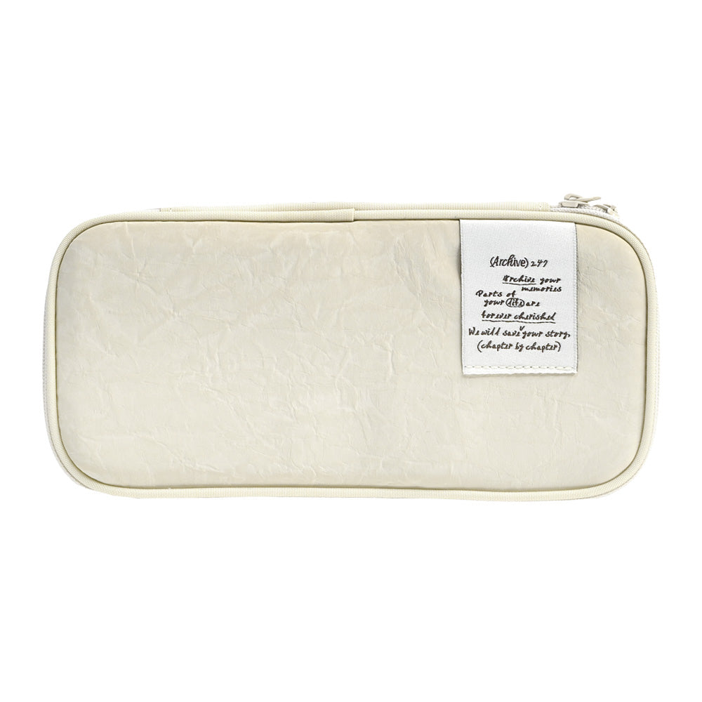 This pencil case combines a soft color combination with practical synthetic leather, offering both style and functionality.