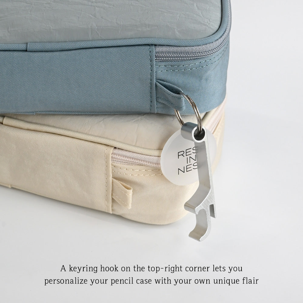 - 【Point Details】 Featuring a minimalist, clean-lined design, this pencil case includes a keyring at the top right corner for personal customization.