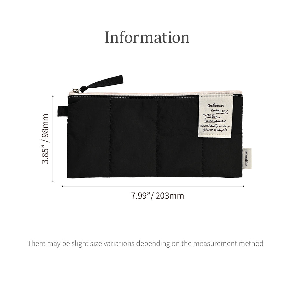 Monolike Archive247 Cushion Pencil Case, 07. Black - Pencil Pouch, Portable Pencil Bag, Pencil Case, Office Pouch case, Cushion, Soft, Vintage
