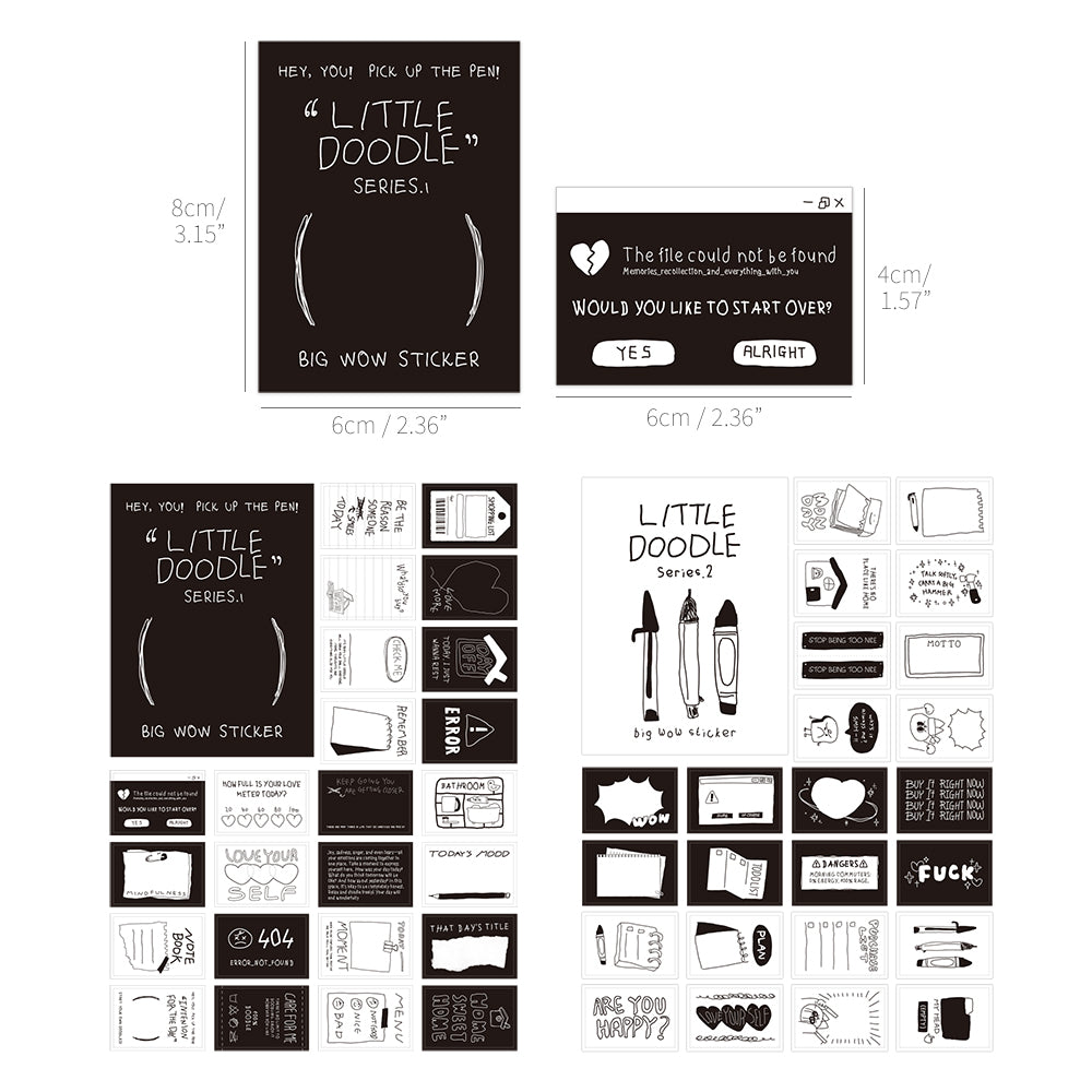 Monolike Big Wow Sticker Little Doodle Series.1 + Series.2 Set - Big Size Cute Stickers, Square Stickers