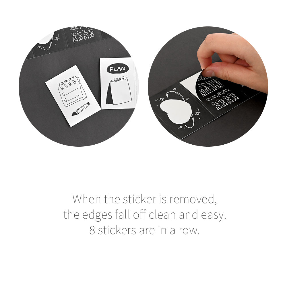 • 【Composition】 There are 24 different designs, with each design containing two pieces, making a total of 48 stickers. Eight designs are arranged in a single line, making it easy to find and use specific stickers. The perforation line allows you to easily separate the stickers you want. These highly versatile stickers can be used in various ways, such as in planners, for decorating diaries, or by attaching them to items.