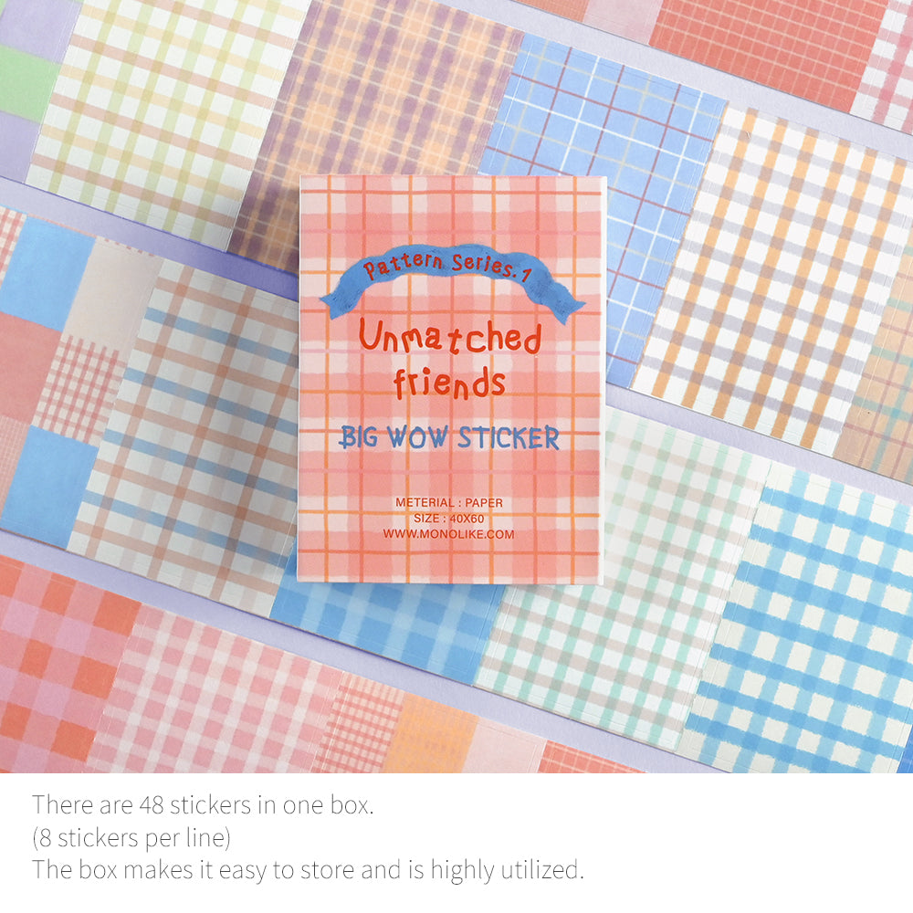 Monolike Big Wow Sticker Unmatched Friends Pattern Series.1 + Series.2 Set - Big Size Cute Stickers, Square Stickers