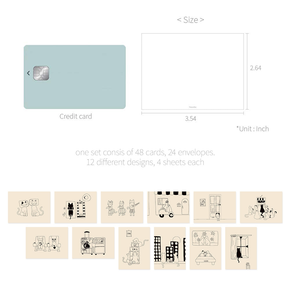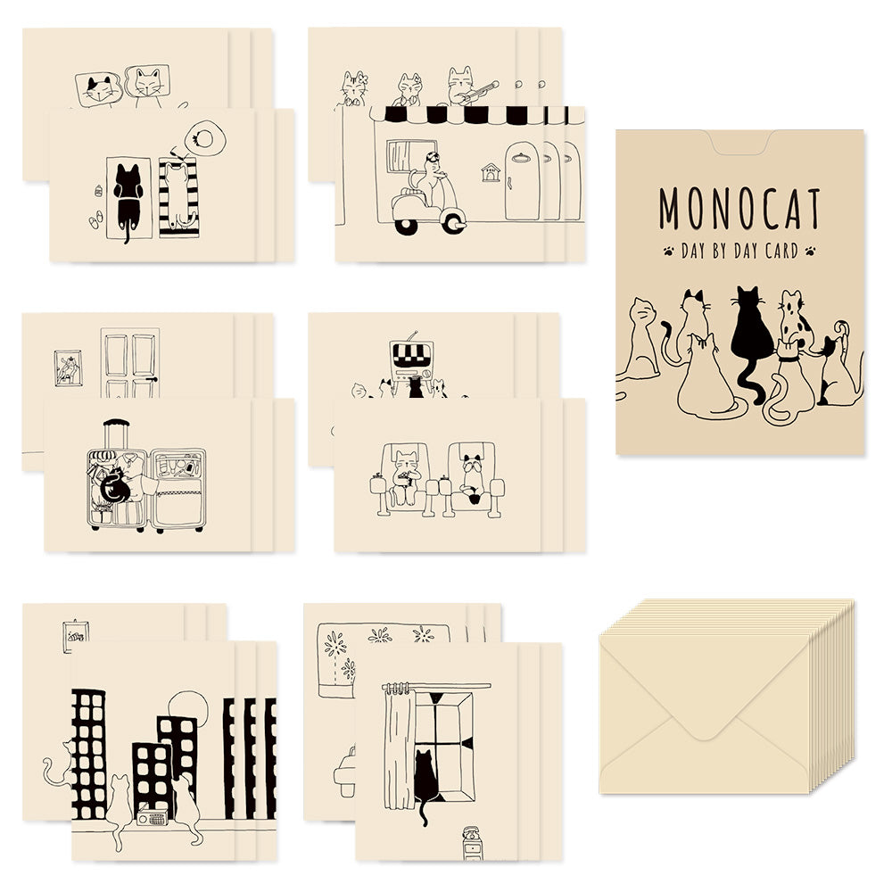 • Load image into Gallery viewer, Monolike Day by Day Card, 110 Monocat - Mix 48 Mini Single cards, 24 envelopes Package