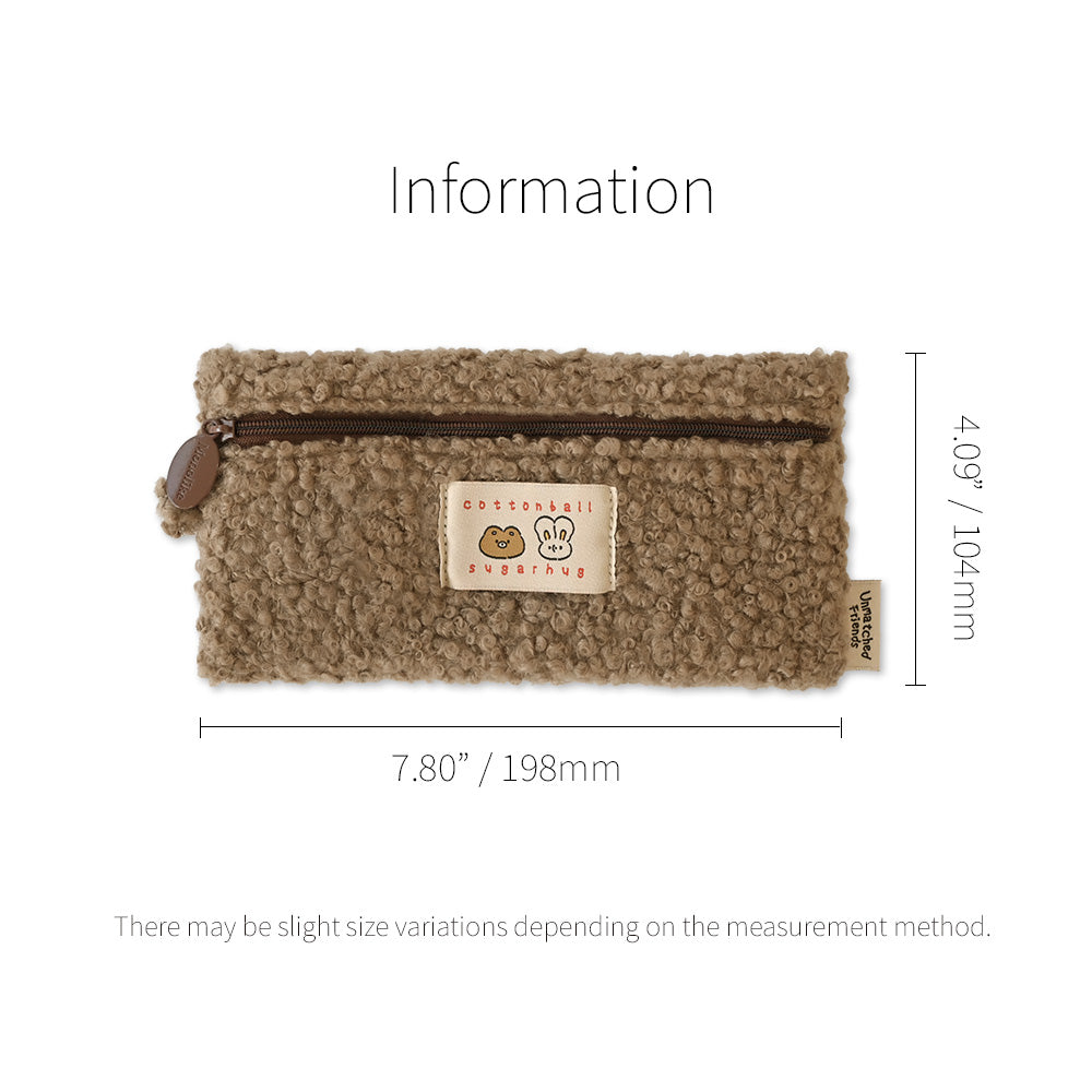 Monolike Unmatched Friends Bbogeuli Pencil Case, Brown - Slim Fuzzy Fleece Pen Pouch for Daily Use with Stain-Resistant Lining