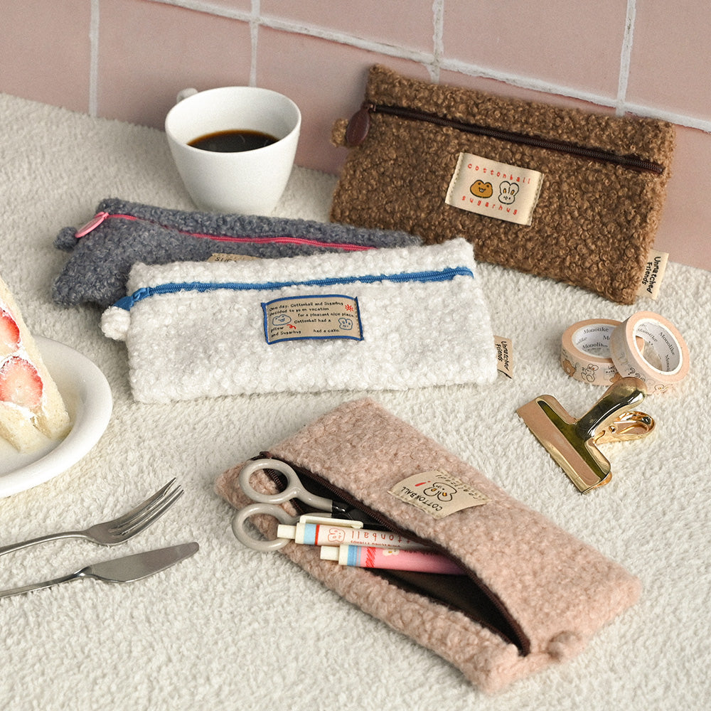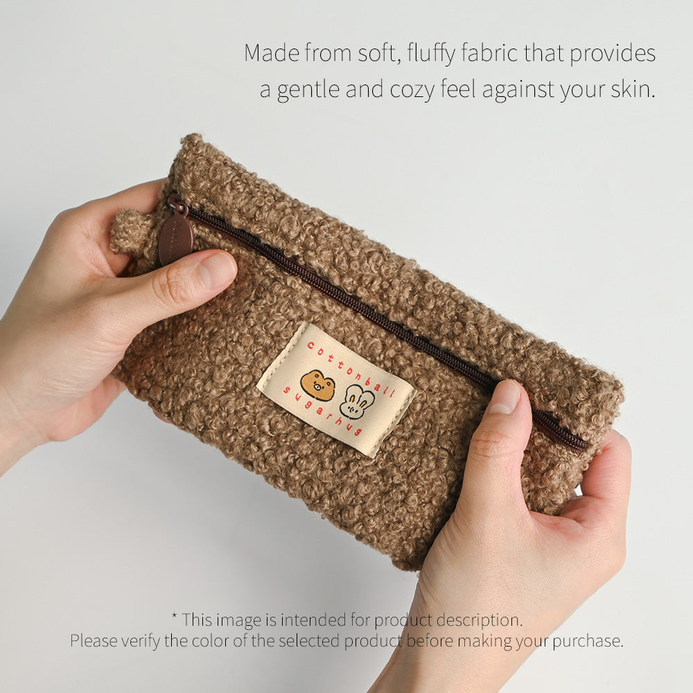 • Load image into Gallery viewer, Monolike Unmatched Friends Bbogeuli Pencil Case, Brown - Slim Fuzzy Fleece Pen Pouch for Daily Use with Stain-Resistant Lining