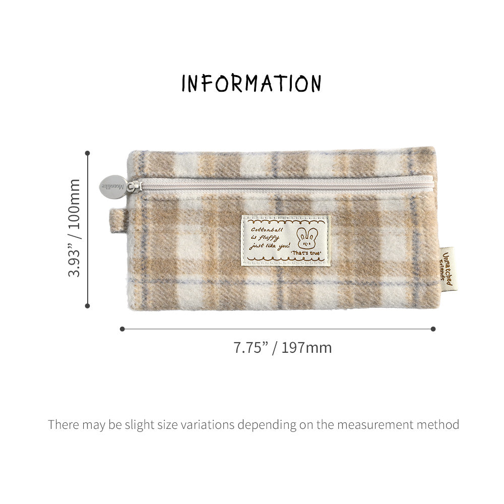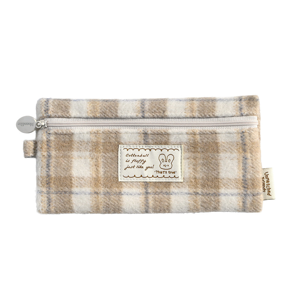 Monolike Unmatched Friends Old Check Pencil Case, Beige - Pencil Pouch, Portable Pencil Bag, Pencil Case, Office Pouch case, Cushion, Soft, Vintage