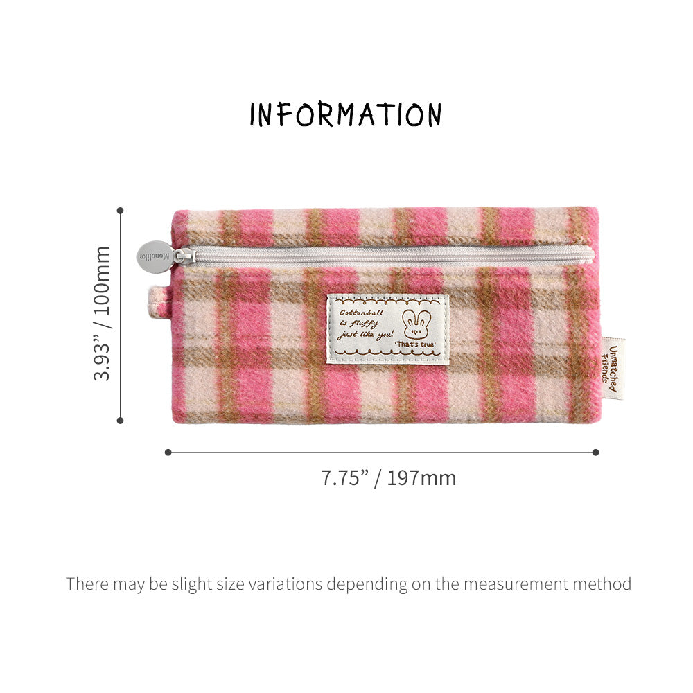 • Load image into Gallery viewer, Monolike Unmatched Friends Old Check Pencil Case, Hot Pink - Pencil Pouch, Portable Pencil Bag, Pencil Case, Office Pouch case, Cushion, Soft, Vintage